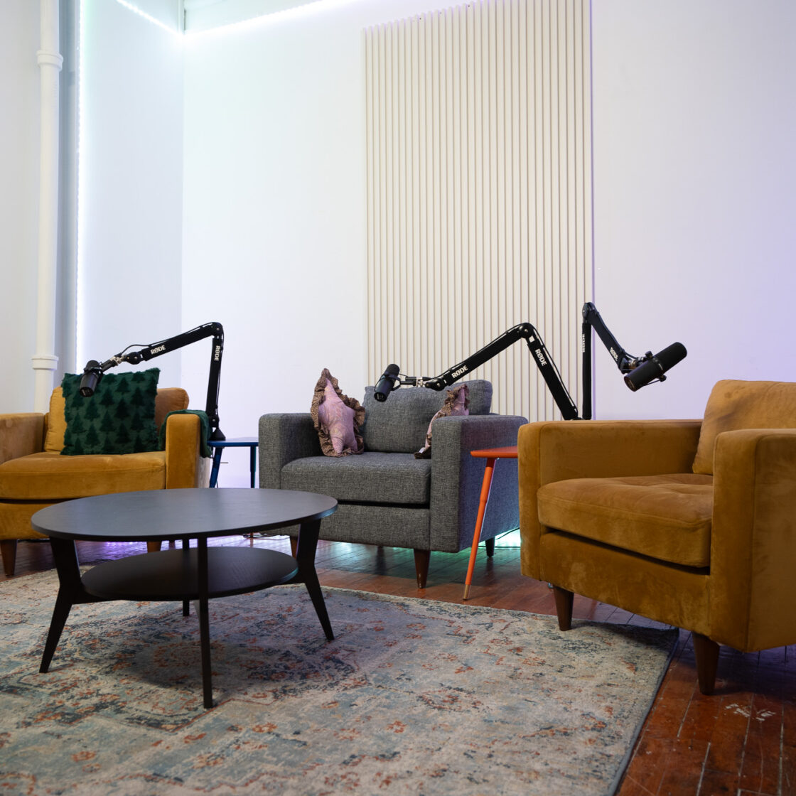 A skilled production crew is available for hire, offering technical support to ensure a polished, professional result. Whether you’re recording interviews, panel discussions, or solo content, Location A delivers a top-tier podcasting experience. Book your session today!