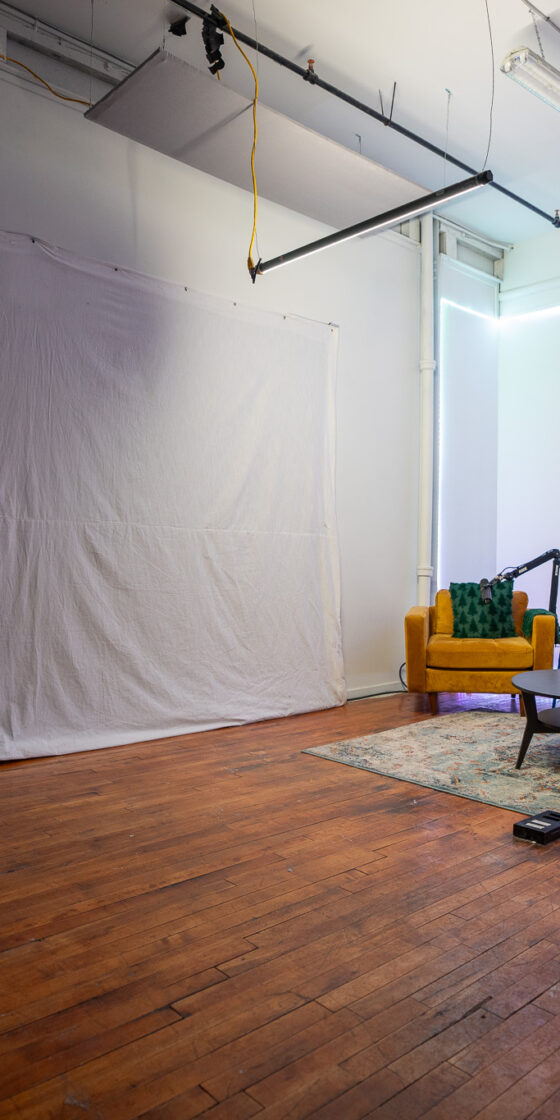 Our 400-square-foot podcast studio is built for high-quality audio and video production. Designed with soundproof insulation, it provides a premium setting for podcasting, live streaming, and content creation.